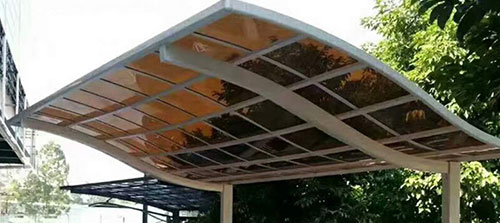 頂棚采用進(jìn)口聚碳酸酯板,抗沖擊比玻璃強(qiáng),有效防止高空墜物