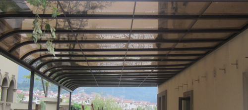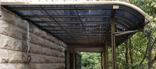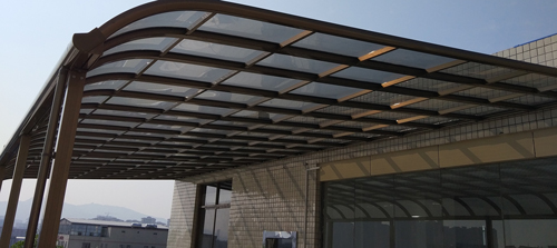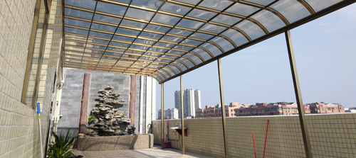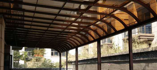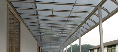 頂棚采用進口聚碳酸酯板,抗沖擊是玻璃的數百倍,有效防止高空墜物