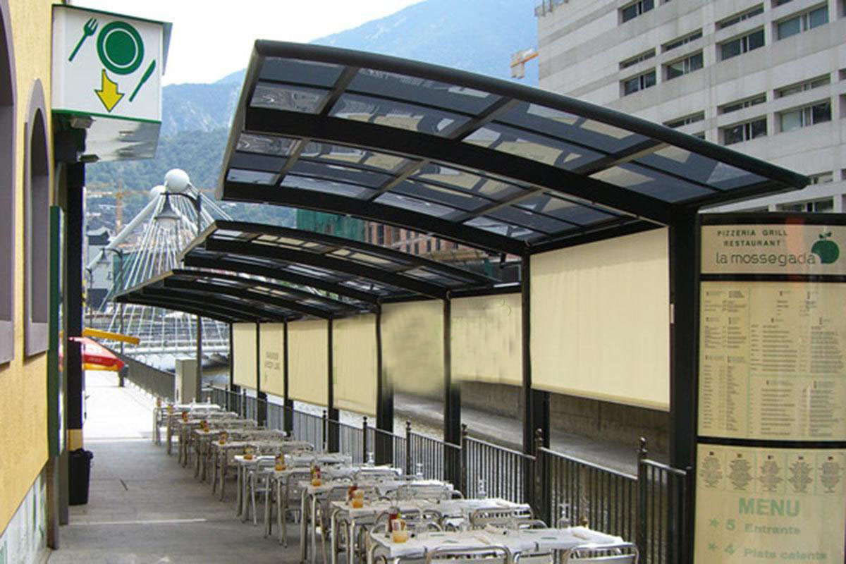 劣勢:鋼管材料骨架,安全強度低。頂部彩鋼瓦經受不住風力影響,容易發生形變造成安全隱患。使用壽命短,美觀度差,后期維護成本高和投入精力大。