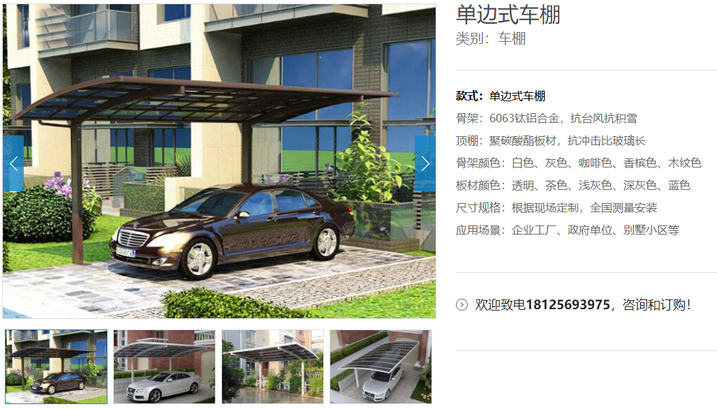 鋁合金車棚以鈦鋁合金為主體骨架,表面噴涂靜電粉末,以達到抗腐蝕的效果,棚頂還采用可以吸收紫外線的聚碳酸酯的面板,可以很好地保護汽車。