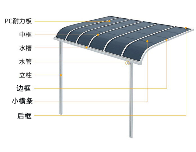 棚頂是雨棚的主要部件,雨棚的主要功能,擋雨、擋風、遮陽、防高空墜物都是靠棚頂來實現的。