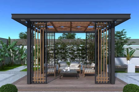 在家庭庭院中,鋁合金景觀涼亭充滿了人情味的裝飾性,回到家后褪去整日的奔波疲累,感受來自家的溫暖。鋁合金景觀涼亭融入了現代元素,整體設計時尚且富有立體感。在保證它的產品質量的同時,設計師們充分的發揮了他們對家的理解,將溫馨舒適的氛圍融入了鋁合金景觀涼亭中,以優雅、低調、高貴為特點,通過簡潔的設計,體現了主人的對家的熱愛。
