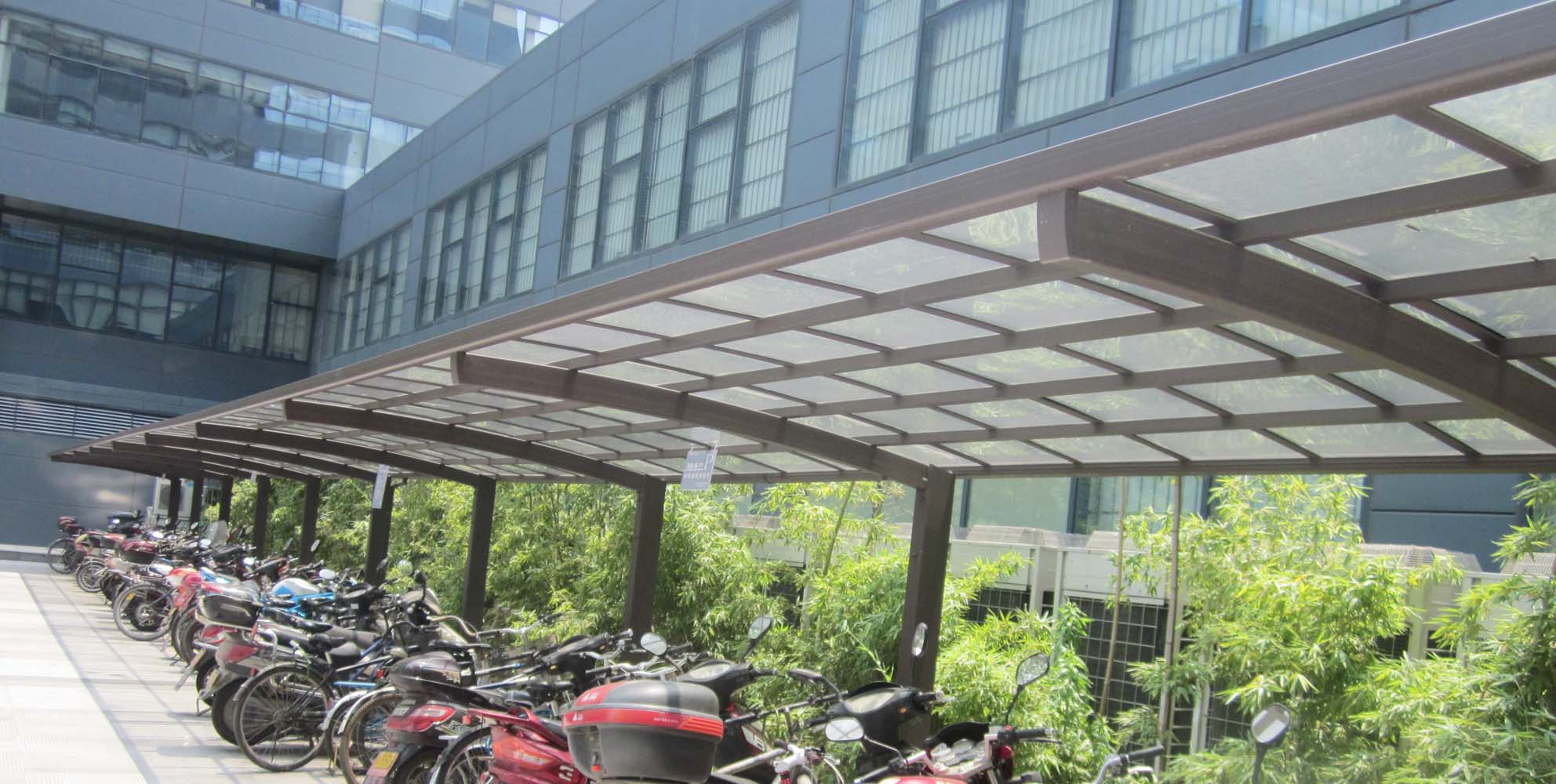 自行車棚作為城市公交設施綠色出行的一部分,是市民停放自行車的固定場所,自行車棚的建設單位打造城市低碳交通,為了還城市一個健康清新的環境,市民要加強意識,從而達到減少低碳元素類,特別是二氧化碳的排放量,從而減少對大氣的污染,減緩生態惡化,市政府應設立自行車棚,為市民能實現綠色低碳環保的環境提供場所。鋁合金自行車棚是目前備受歡迎的車棚類型,在國外已逐漸應用于體別墅小區,企業工廠,政府單位等建筑中。