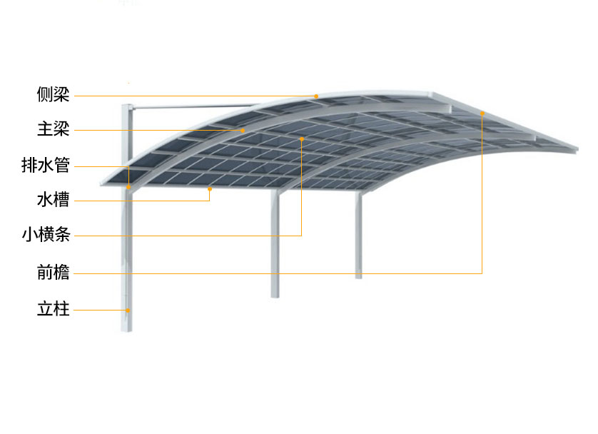 骨架材質:鈦鋁合金 頂棚材質:聚碳酸酯板 面積計算:按頂棚展開面 型材壁厚:1mm-4mm 板材厚度:2mm和3mm 尺寸:可定制 型材工藝:噴涂、電泳、轉印 框架顏色:白色、灰色、咖啡色、香檳色、木紋色 板材顏色:透明、茶色、淺灰色、深灰色、藍色 適用范圍:企業工廠、政府單位、別墅小區 款式選擇:單邊式車棚、合抱式車棚、斜拉式車棚、歐式S型車棚
