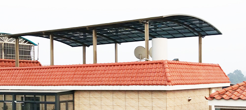 頂棚采用進口聚碳酸酯板,抗沖擊是玻璃的數百倍,有效防止高空墜物