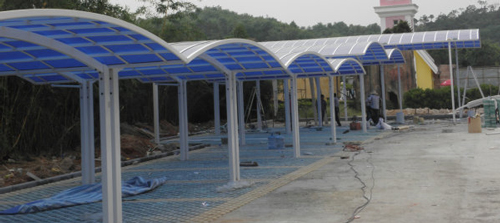 骨架材質:鈦鋁合金 頂棚材質:聚碳酸酯板 面積計算:按頂棚展開面 型材壁厚:1mm-4mm 板材厚度:2mm和3mm 尺寸:可定制 型材工藝:噴涂、電泳、轉印 框架顏色:白色、灰色、咖啡色、香檳色、木紋色 板材顏色:透明、茶色、淺灰色、深灰色、藍色 適用范圍:企業(yè)工廠、政府單位、別墅小區(qū) 款式選擇:單邊式車棚、合抱式車棚、斜拉式車棚、歐式S型車棚