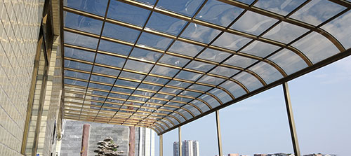 頂棚采用進口聚碳酸酯板,抗沖擊比玻璃強,有效防止高空墜物